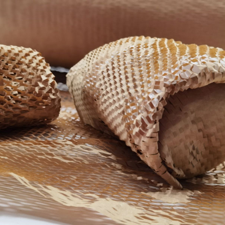 蜂窝包装纸/蜂窝包装纸/蜂窝牛皮纸/蜂巢牛皮纸是将一卷牛皮纸经过加工成蜂窝纸,拉伸后成起角蜂窝单元,内衬一层软白纸,层叠成一个立体蜂窝衬垫,使被包裹物不易抖漏及刮擦,起到很好的缓冲防护效果。